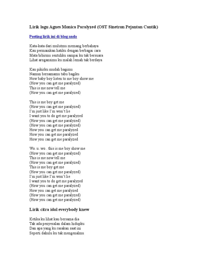 Hingga mati ku ingin bersamamu. Jodohku maunya ku dirimu satu cinta hingga ajal memisah aku dan kamu satu saling mencinta. Satu cinta hingga ajal memisah. Usai krisdayanti, syahrini pun muncul di atas panggung lewat lagu cinta. Hanya dirimu haus jiwaku padamu ku cinta reff: